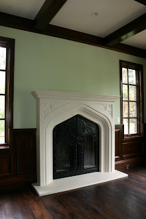 A bold massive mantle with a Tudor arch for an important room. Standing aside, I am always surprised how this huge mantle captures onlookers and stretches their imaginations